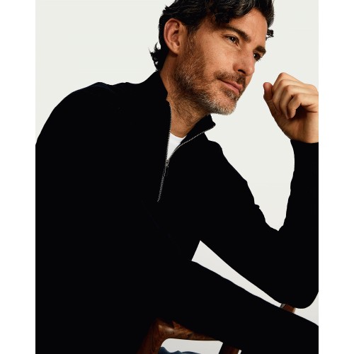 Pure Cotton Ribbed Half Zip Jumper in Navy