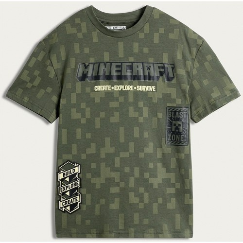 Minecraft Pure Cotton Slogan Print T-Shirt in Green