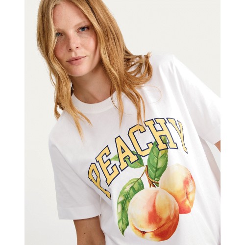 Pure Cotton Peachy Slogan Graphic T-Shirt in White