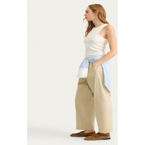 Seam Detail High Rise Barrel Leg Jeans in Ecru