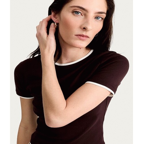 Pure Cotton Double Layer Cropped T-Shirt in Brown