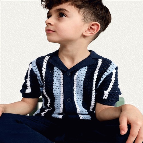 F&F Boys Pure Cotton Knitted Striped Shirt in Navy