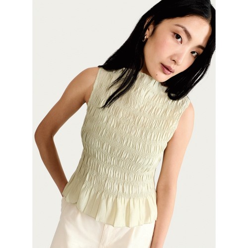 Shirred Sleeveless Top in Green