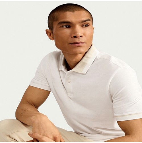 Pure Cotton Short Sleeved Polo Shirt in Ecru