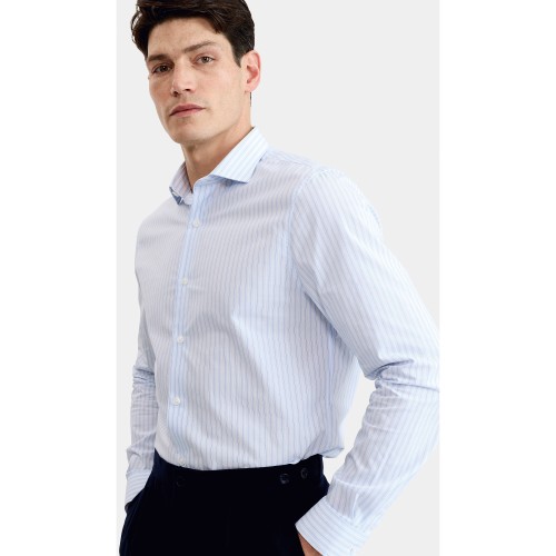Pure Cotton Slim Fit Stripe Print Button Down Shirt in Blue