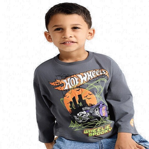 Hot Wheels Wheelie Spooky Slogan Pure Cotton Top in Grey
