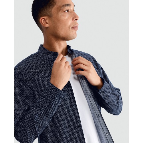 Cotton Rich Geometric Print Long Sleeved Shirt in Navy