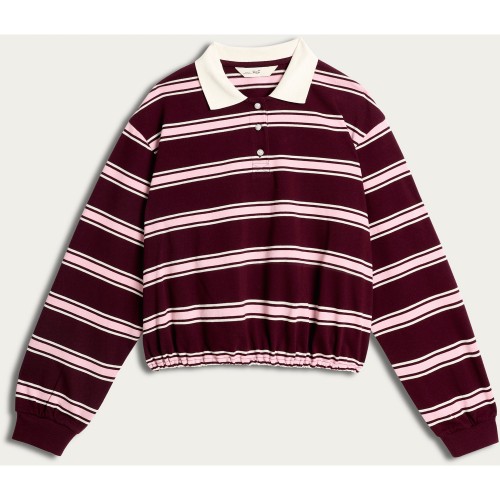 Pure Cotton Striped Cinched Hem Rugby Top in Multi Brown
