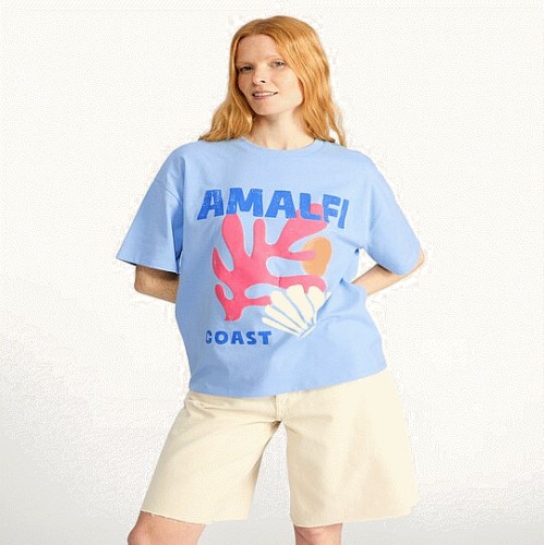 Pure Cotton Amalfi Coast Graphic T-Shirt in Blue