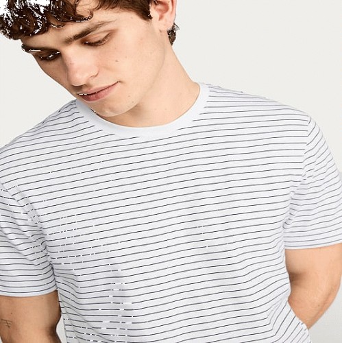 Pure Cotton Heavyweight Stripe Print T-Shirt in Grey Marl