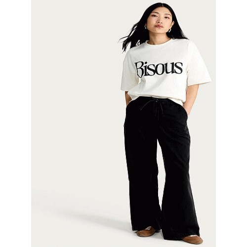 Pure Cotton Bisous Slogan Boxy Fit T-Shirt in Cream