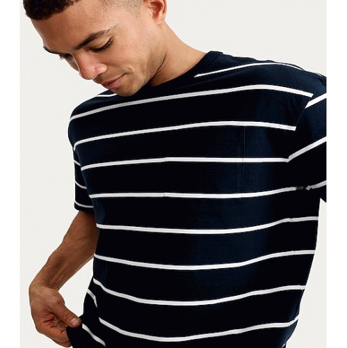 Pure Cotton Stripe Print Relaxed Fit Pocket T-Shirt in Navy