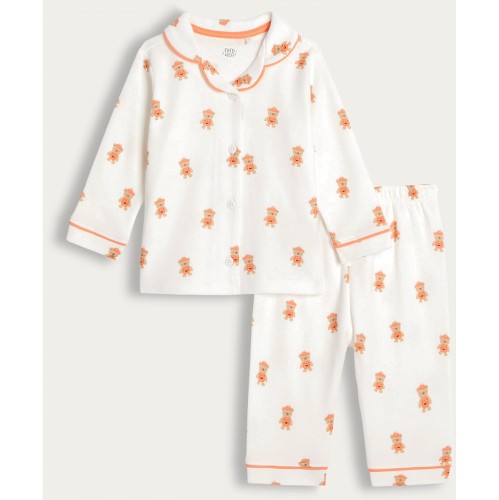 Pure Cotton Teddy Bear Print Pyjama Set in White