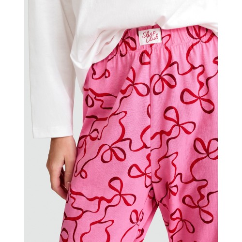 Pure Cotton Bow Print Pyjama Bottoms in Pink