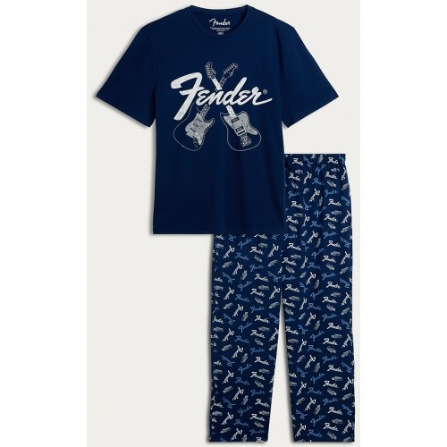 Mens Pure Cotton Pineapple Print Pyjama Set XL Navy