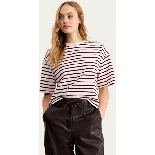 Pure Cotton Striped Boxy Fit T-Shirt in Multi Pink