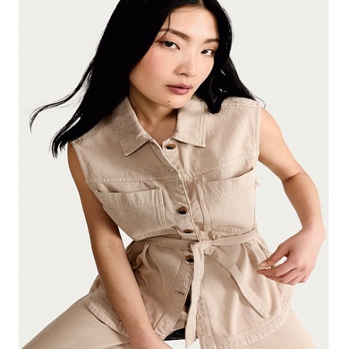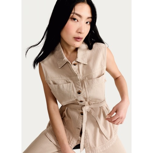 Pure Cotton Utility Belted Co-ord Waistcoat in Stone