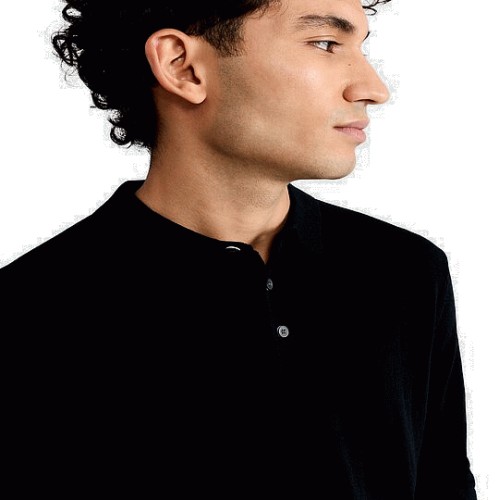 Pure Merino Wool Long Sleeved Polo Shirt in Black