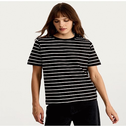 Pure Cotton Striped Short Sleeved T-Shirt in Multi Brown
