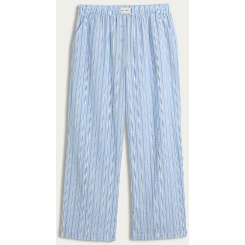 Pure Cotton Textured Striped Wide Leg Pyjama Bottoms in Multi Blue