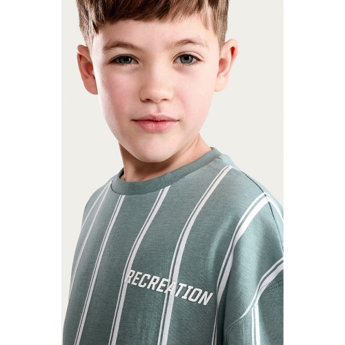 F&F Boys Pure Cotton Recreation Striped T-Shirt in Khaki