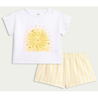 2-Piece Pure Cotton Sun Print T-Shirt and Striped Shorts Set in White
