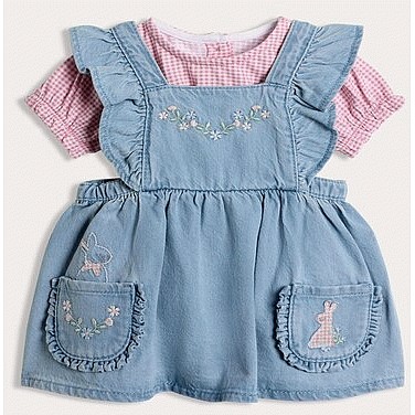 Pure Cotton Embroidered Bunny Pinafore Set in Pink