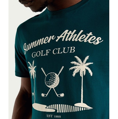 Pure Cotton Summer Athletes Golf Club Slogan T-Shirt in Green