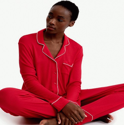 Ribbed Contrast Trim Pyjama Set in Red