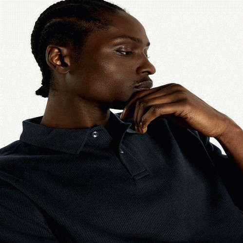 Pure Cotton Textured Knit Polo Shirt in Navy