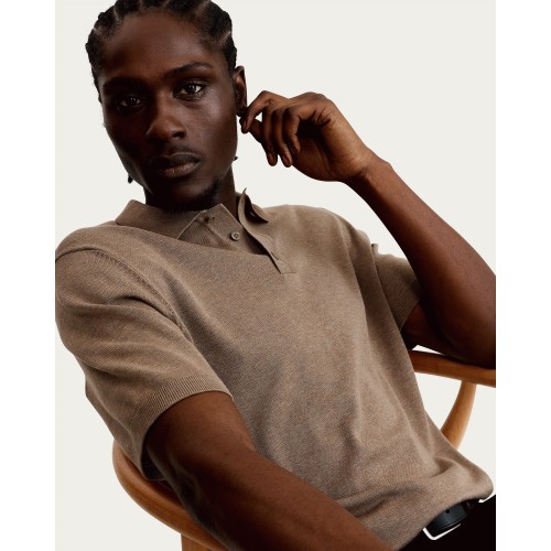 Pure Cotton Knitted Short Sleeved Polo Shirt in Brown