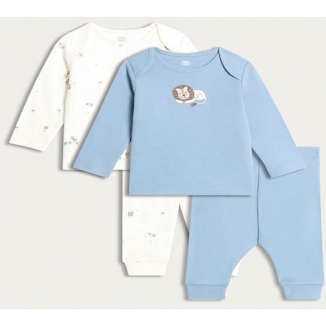 2-Pack Pure Cotton Lion Pyjama Set in Blue