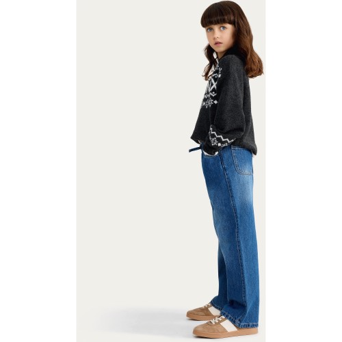 F&F Girls Pure Cotton Heart Wide Leg Jeans in Blue