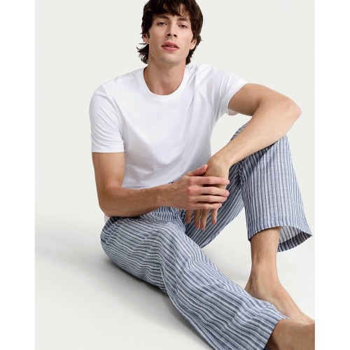 Pure Cotton Textured Striped Wide Leg Pyjama Bottoms in Multi Blue