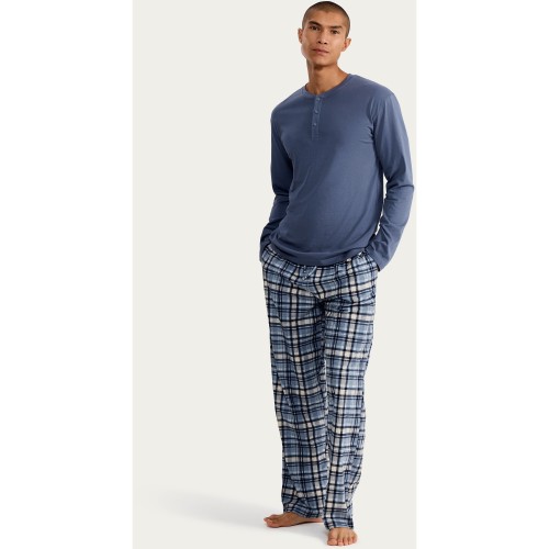 Pure Cotton Top and Fleece Patterned Pants Pyjamas in Black
