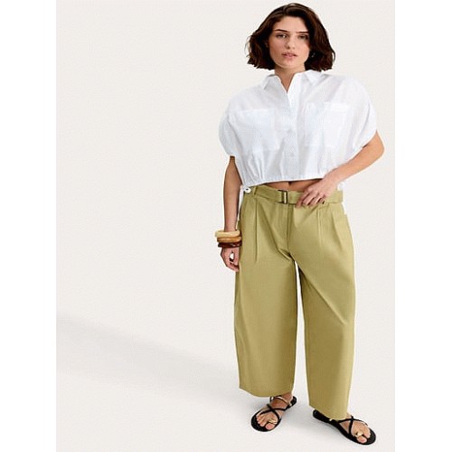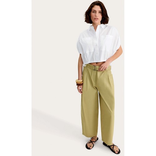 Pure Cotton Barrel Leg Belted Trousers in Green