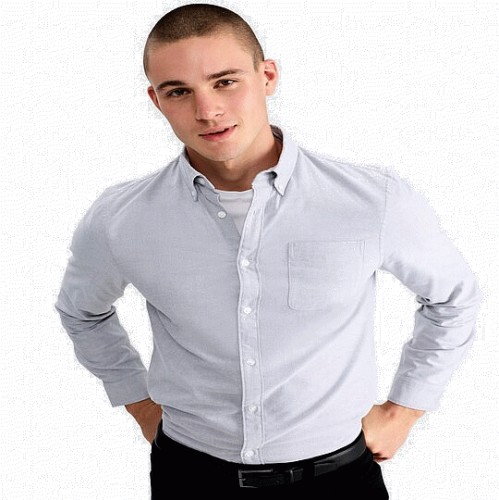 Pure Cotton Brushed Button Down Oxford Shirt in Grey