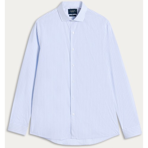 Pure Cotton Slim Fit Stripe Print Button Down Shirt in Blue