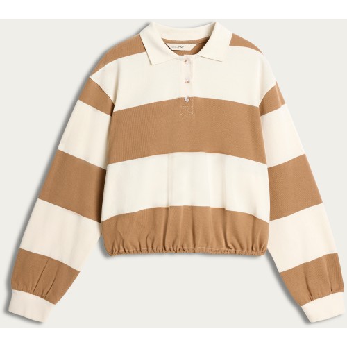 Pure Cotton Striped Cinched Hem Rugby Top in Multi Brown