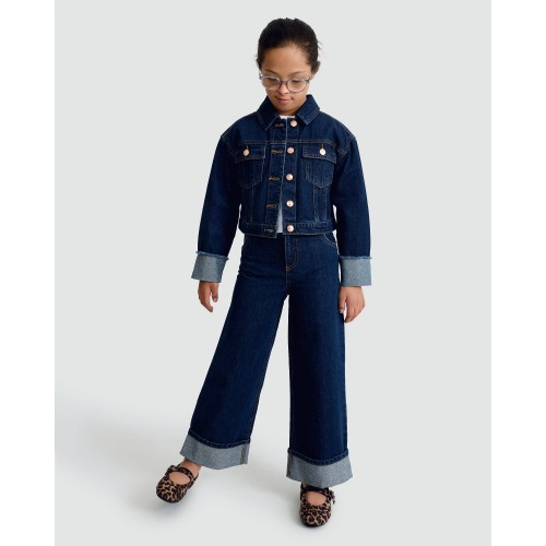 F&F Girls Pure Cotton Wide Leg Turn Up Jeans in Blue