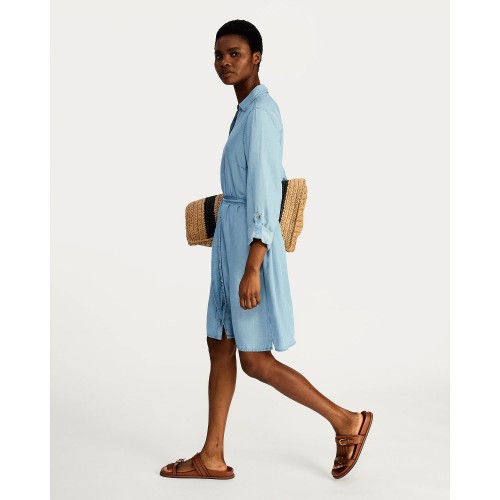 Pure Lyocell Button Front Tie Waist Mini Dress in Blue