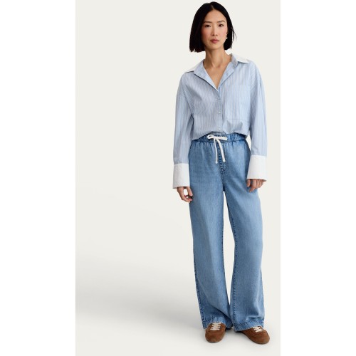 Pure Lyocell Wide Leg Drawstring Jeans in Blue