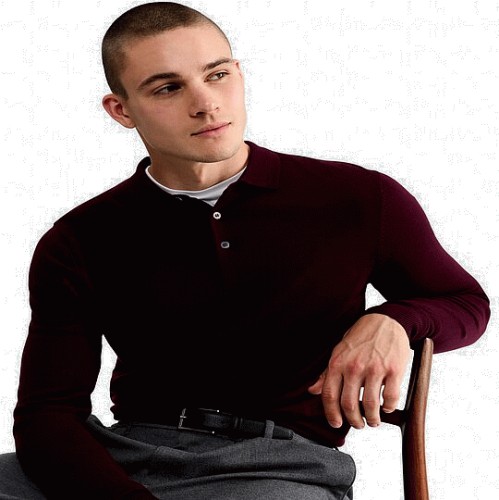 Pure Merino Wool Long Sleeved Polo Shirt in Burgundy