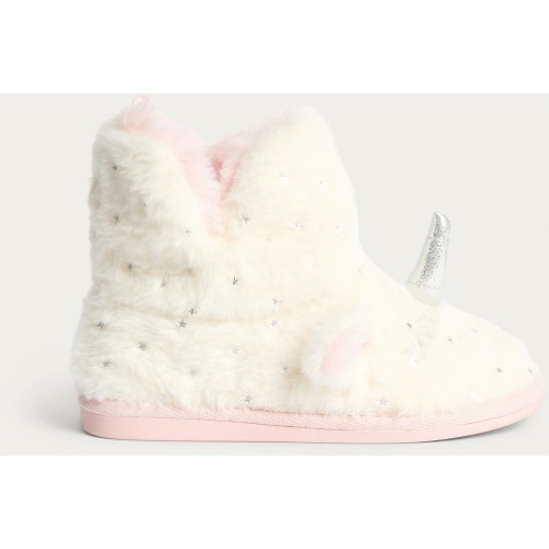 Girls Fluffy Unicorn Star Print Boot Slippers in Multi