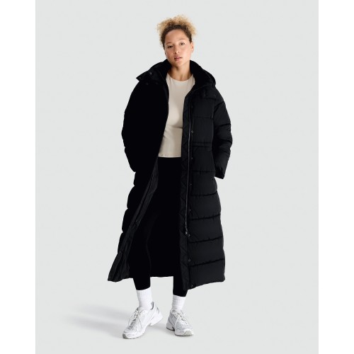 Hooded Longline Shower Resistant Puffer Coat in Black