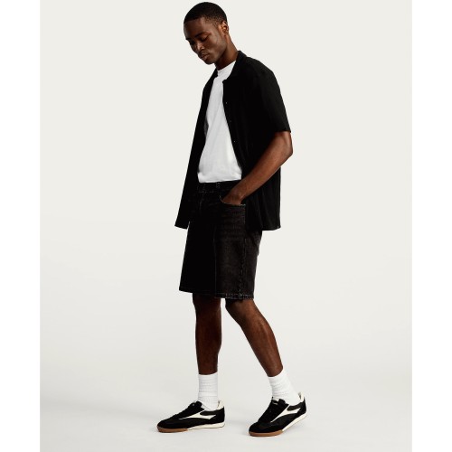 Regular Fit Knitted Denim Shorts in Black