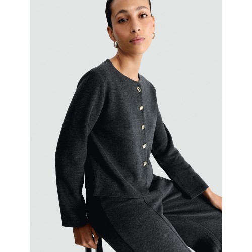 V Neck Button Up Balloon Sleeved Co-ord Cardigan in Chocolate