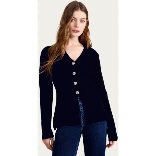 Ribbed Button Up Cardigan in Black