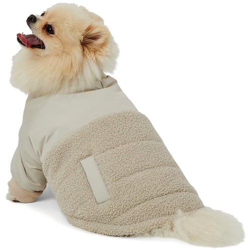 Faux Shearling Collar Shower Resistant Bomber Jacket in Khaki
