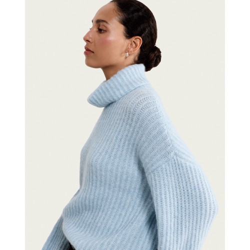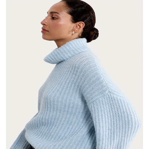 Ribbed Cotton Rich Two Tone Roll Neck Jumper in Neutral